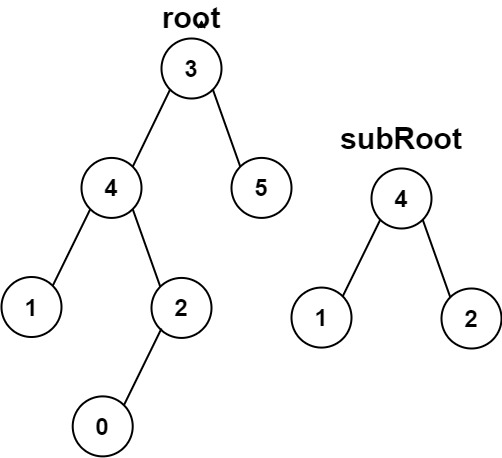 | root = [3,4,5,1,2], subRoot = [4,1,2] | true |