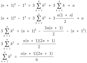 (n + 1)³ - 1³ = 3(1² + 2² + 3² + 4² + … + n²) + 3(1 + 2 + 3 + 4 + 5 + … + n) + n