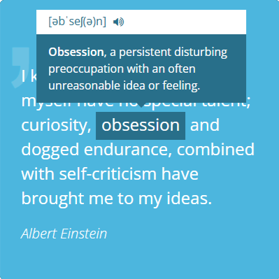 툴팁: 당신은 'obsession'이 무엇을 의미하는지 이미 알고 있을 것입니다. 하지만 어쨌든 찾아볼 수는 있습니다.