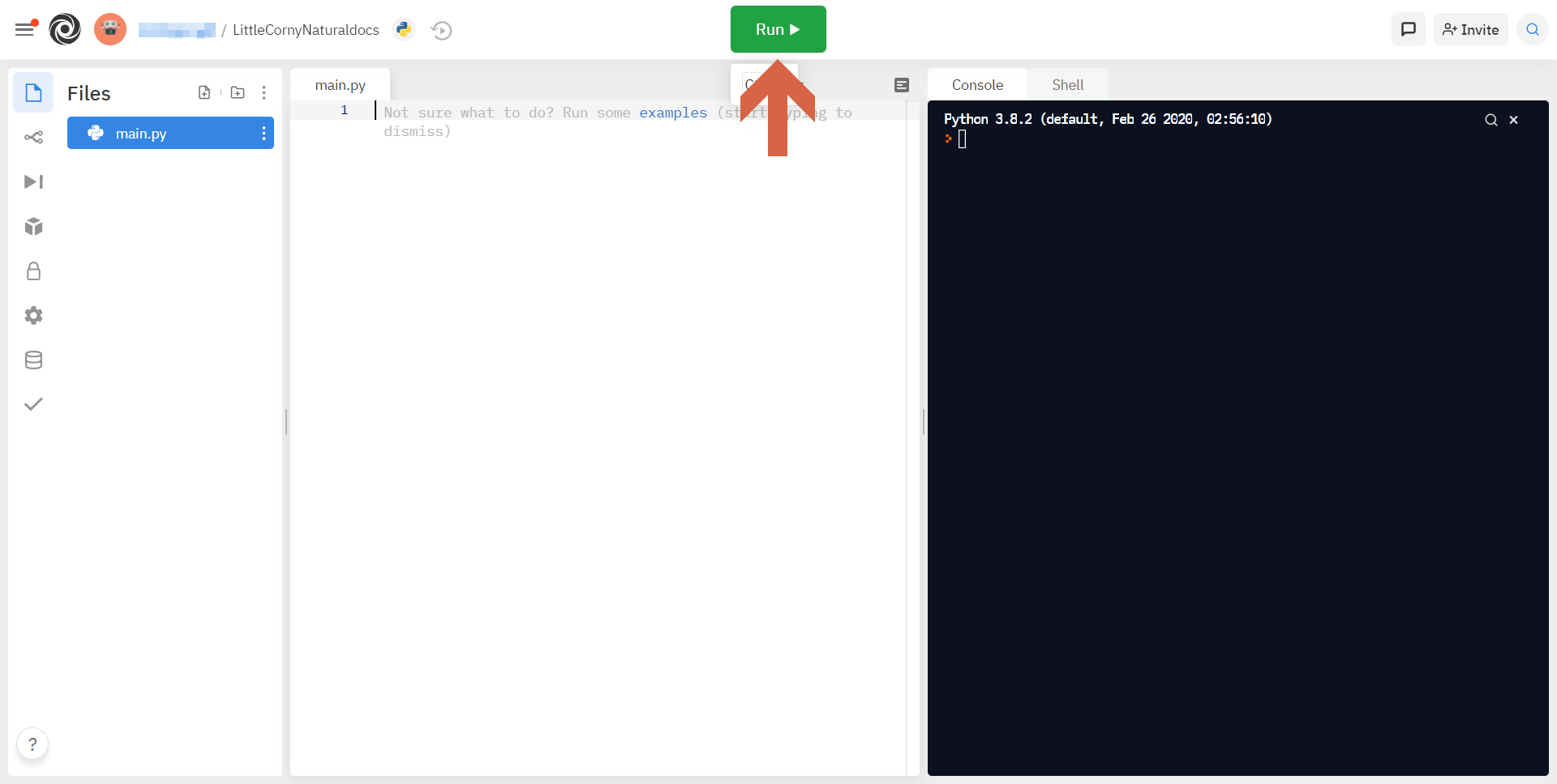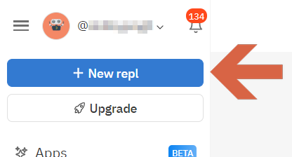 로그인하셨으면 왼쪽 위의 New repl을 눌러 새로운 repl(프로젝트)를 만들어주세요.