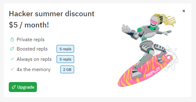 이제 리플릿 사용법을 익혀서 토이 프로젝트를 좀 더 쉽게 시작해봅시다. 또 리플릿은 호스팅하려면 유료로 돈을 지불해야 하지만 편법으로 무료로 사용하는 것이 가능합니다. 이 방법에 대해 알아봅시다.