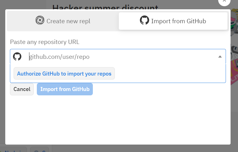 깃허브에서 repo를 가져올 수도 있습니다. repo 주소를 입력한 다음 Import form GitHub를 누르시면 됩니다.