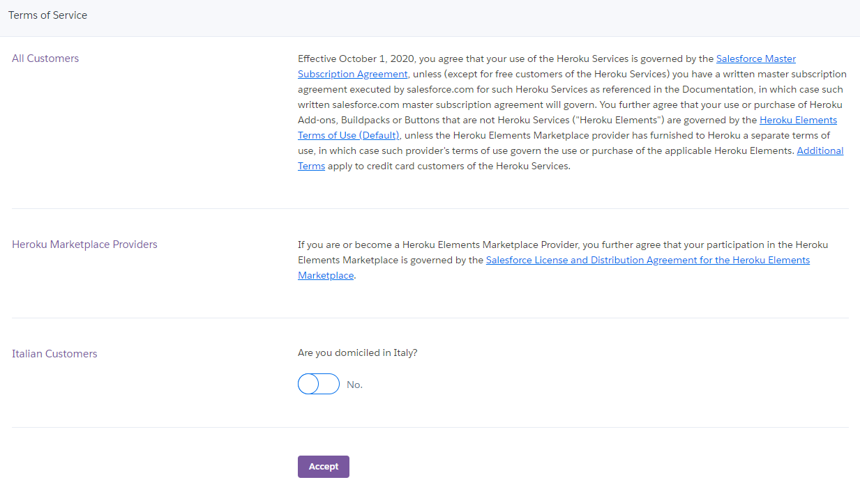 그 후 이용 약관(Terms of Service)이 나오는데 확인하시고 Accept를 누르시면 됩니다.