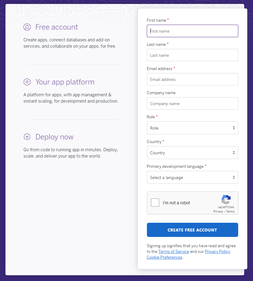 헤로쿠 회원가입을 하려면 위 링크를 클릭해 헤로쿠 사이트에 들어가 주세요. 그 후 우측 상단의 Sign Up을 클릭해 회원가입을 해주세요.