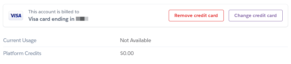 카드 등록을 하시면 위와 같이 Billing 메뉴에 카드 등록이 된 것을 확인할 수 있습니다.