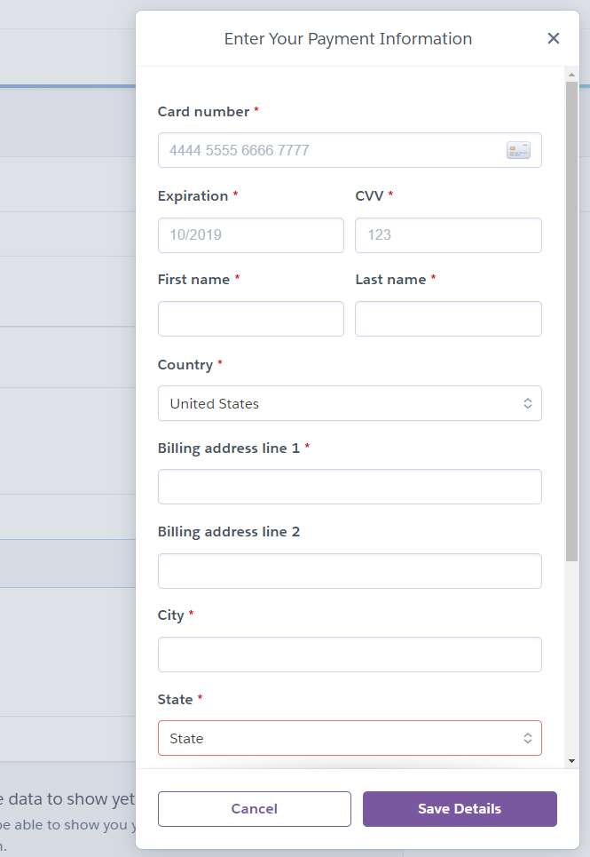 그러면 다음과 같이 화면 오른쪽에 카드 정보를 입력하는 창이 뜨게 됩니다. 해외 결제시 카드 정보 입력법에 대해서는 다른 글을 참고해주세요.