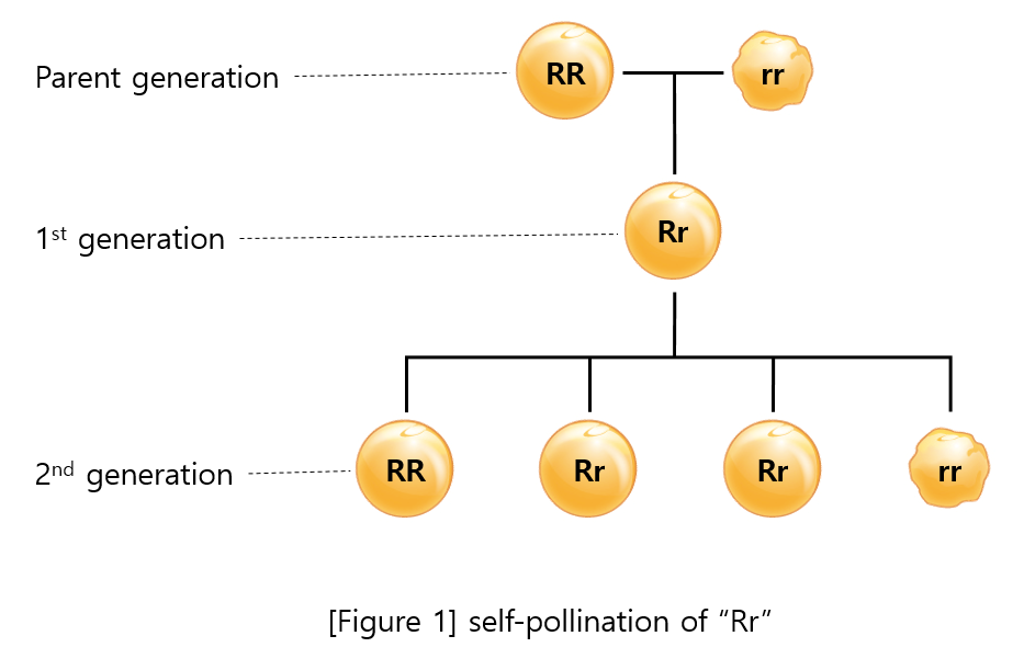 순종 완두콩(RR, rr)은 자가 수분해서 자신과 같은 형질의 후손을 남긴다.